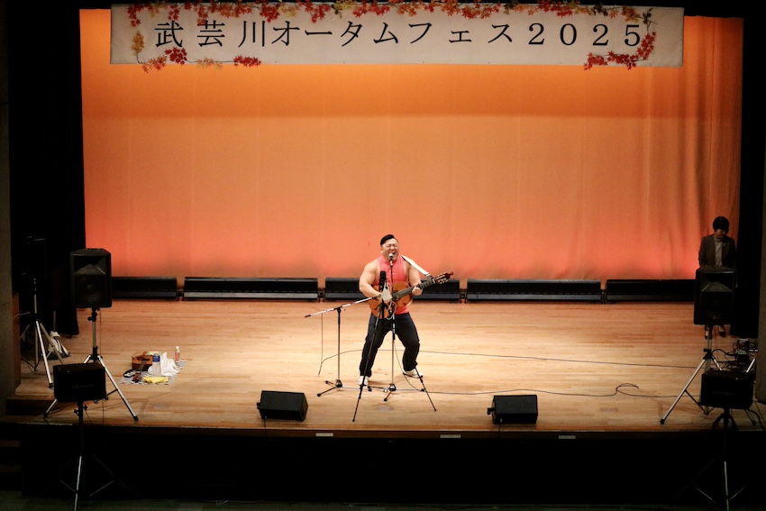 笑いと元気を届ける熱唱ステージ世界で一番マッチョなシンガーソングライター”マッチョきくお”さんの登場です。