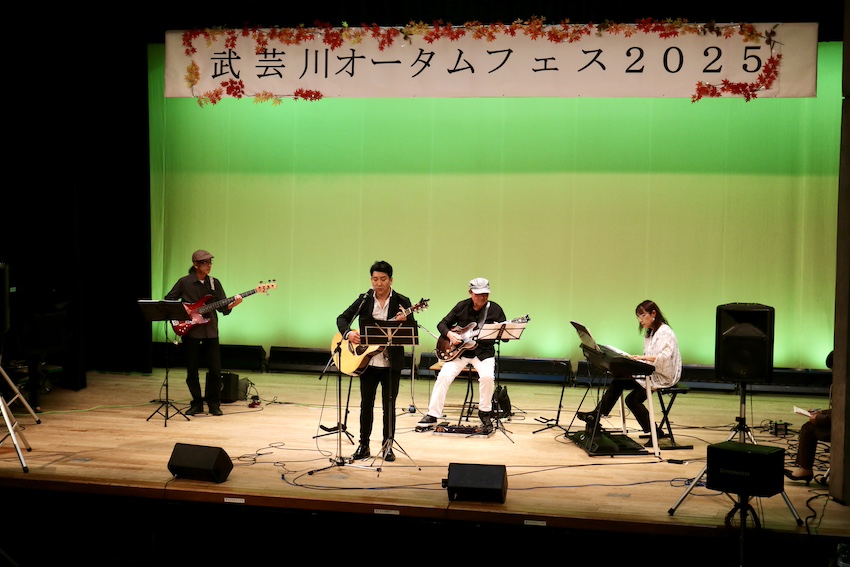 武芸川での出会いってステキ!爽やかなサウンドが会場を盛り上げました♪関市、岐阜市、美濃加茂を中心に活動しております山チャンズと申します。R50(アールゴーマル)で浅野久美子さんと出会い結成されました。